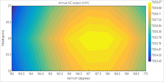 그림 7-9. SAM 프로그램을 이용해 Chicago O’Hare Airport 인근에 태양광 발전기 설치 시, 설치 각도에 따른 발전량 분석을 진행한 모습