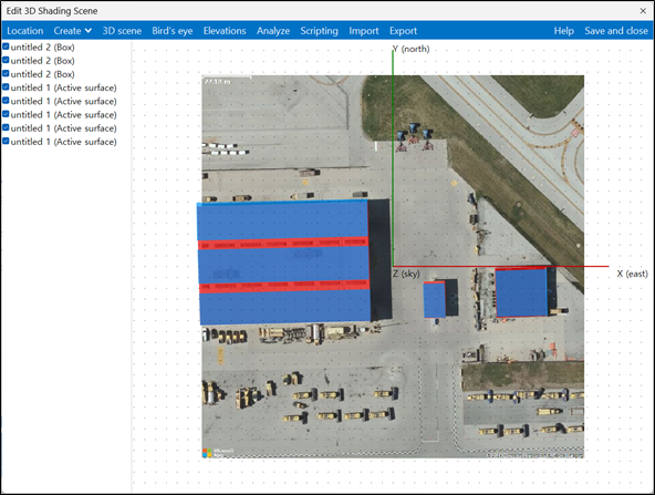SAM(System Advisor Model)은 미국 신재생에너지 연구소 National Renewable Energy Laboratory, NREL)에서 개발한 시뮬레이션 프로그램입니다. 지리정보시스템에 등록된 위성사진을 이용하여 원하는 지역에 발전 설비를 설치했을 때, 모델링을 통해 발전량/elevation/그림자 비율 등 다양한 값을 계산할 수 있습니다.