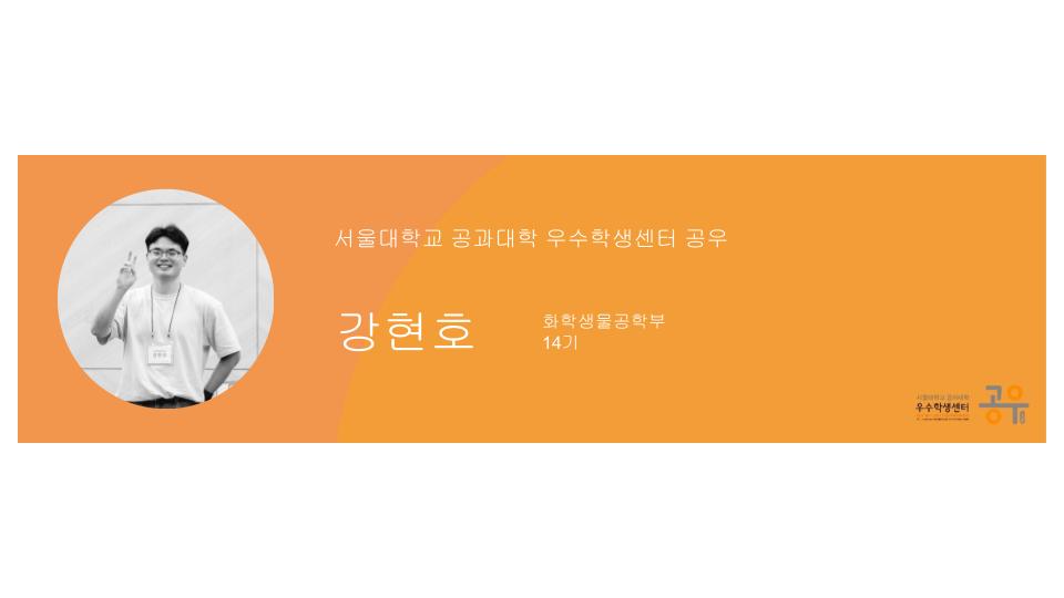 안녕하세요. 공우 14기 화학생물공학부 강현호입니다.